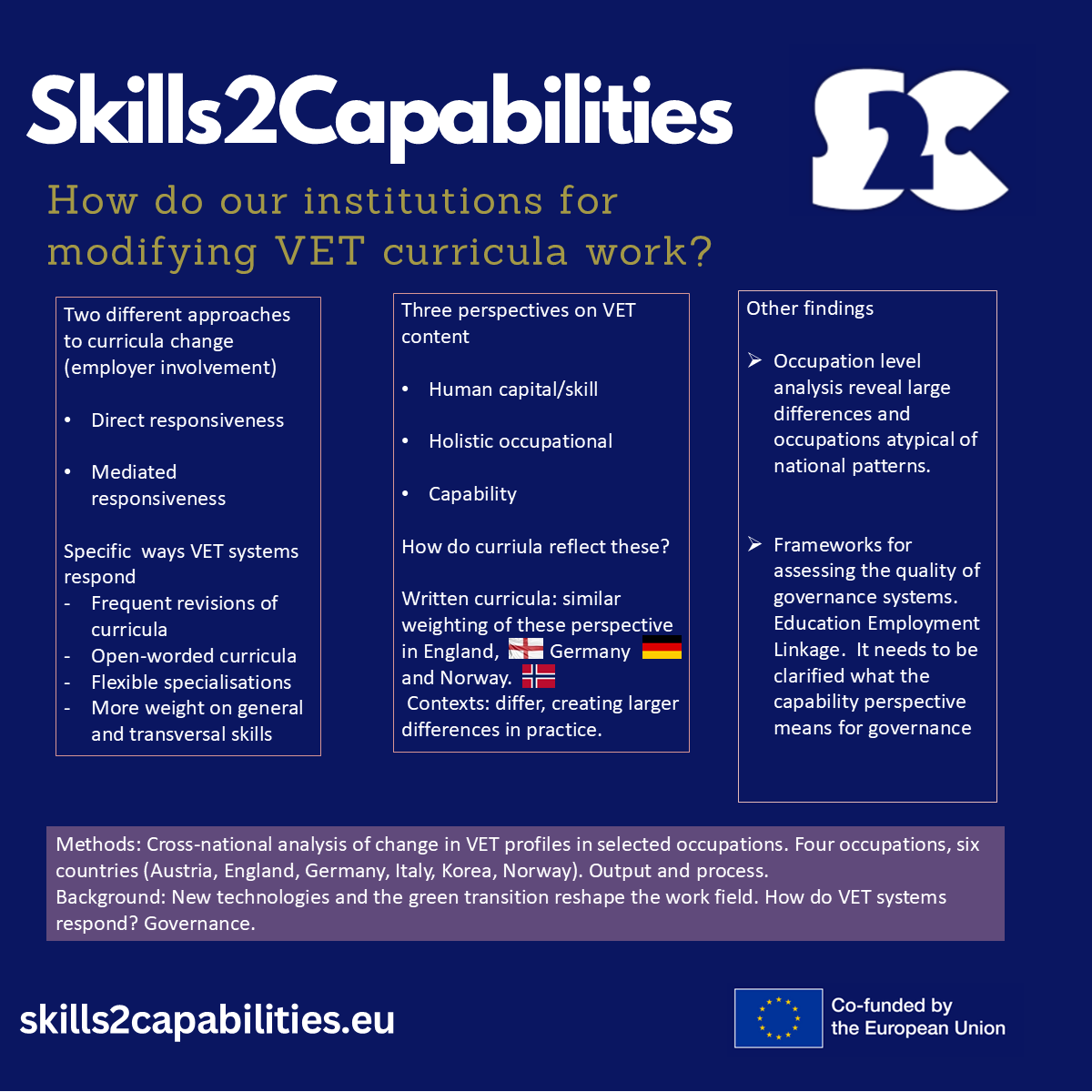Fafo har bidratt på mange av prosjektets arbeidspakker, men har hatt særlig ansvar for komparative analyser av hvordan yrkesutdanningene helsefagarbeider, industrimekaniker, ventilasjonstekniker og lagerlogistikk har utviklet seg i seks ulike land.