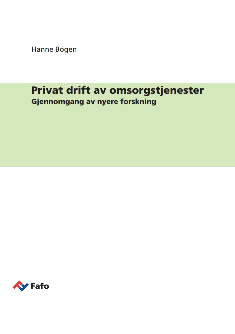 Fafo har over lengre tid arbeidet med problemstillinger relatert til bruk av konkurranse i offentlig sektor. Dette notatet trekker fram en del nyere forskning på feltet og tar spesielt for seg ulike former for konkurranse og privat drift av to omsorgstjenester, henholdsvis kommunale pleie- og omsorgstjenester for eldre og barneverntjenester. Det ser på konsekvenser for kvaliteten på tjenestene og ansattes arbeidsforhold, på omfanget av privat drift og om dette har økt. Notatet har i hovedsak søkelyset på situasjonen i Norge, men med et sideblikk til situasjonen i andre nordiske land.