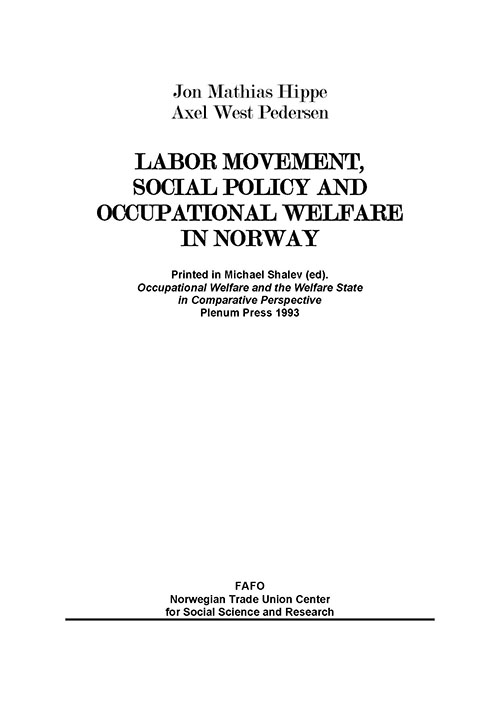 The labour movement, social policy and occupational welfare in Norway