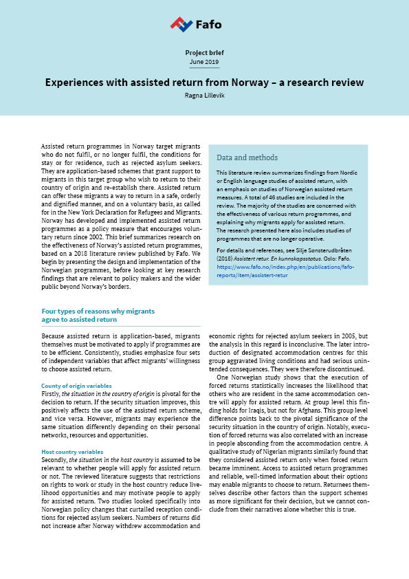 Experiences with assisted return from Norway – a research review