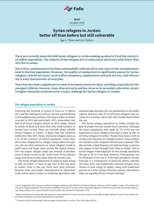 Syrian refugees in Jordan: better off than before but still vulnerable