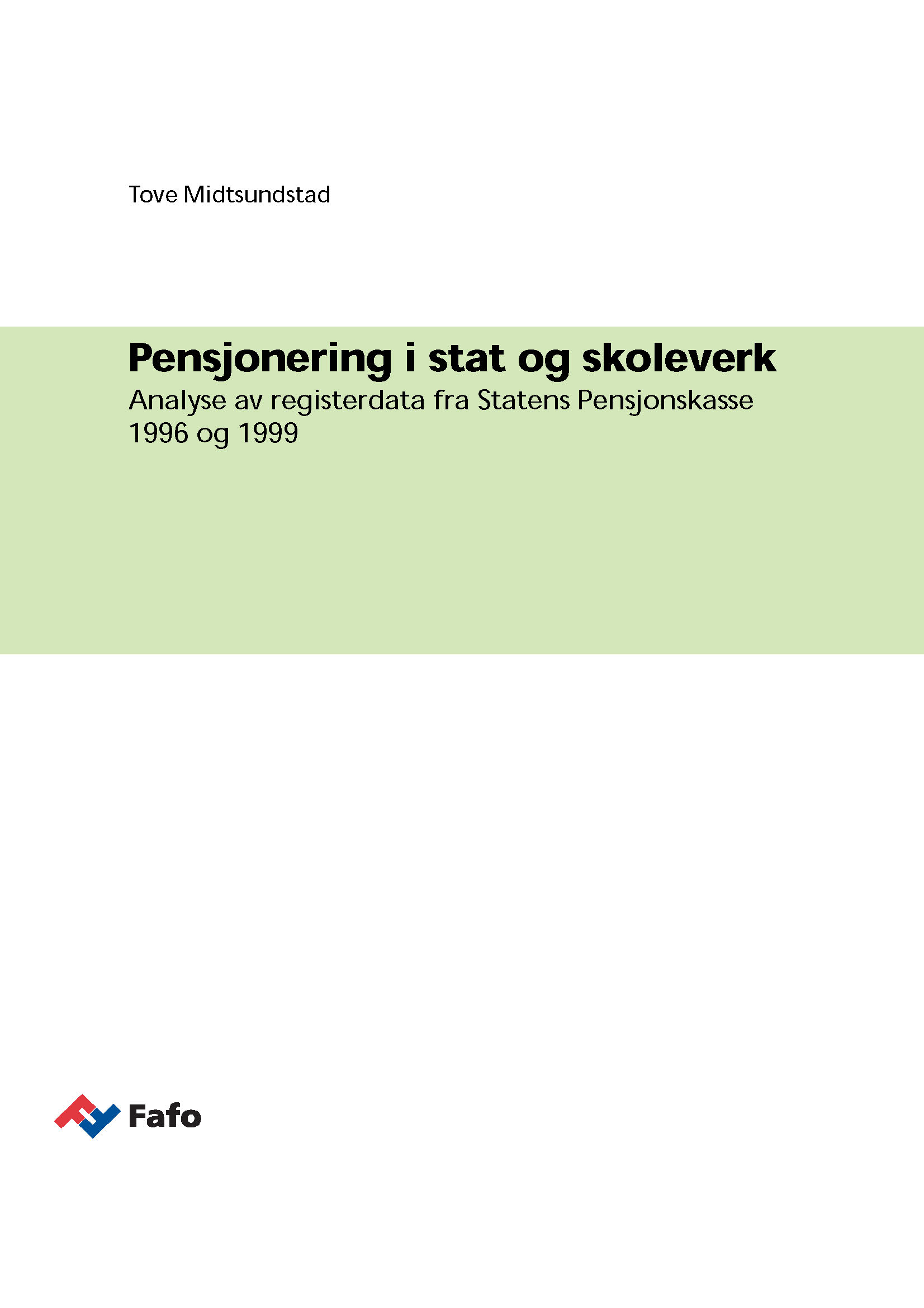 I dette notatet beskrives avgangsmønsteret i 1999 og dels 1996 for eldre arbeidstakere mellom 50-70 år i staten, skoleverket og et utvalg fristilte etater. Pensjoneringsmønsteret beskrives ved hjelp av såkalte overlevelseskurver og ved å beregne den gjennomsnittlige forventede avgangsalderen for ulike typer ansatte. Vi fokuserer på variasjonen i avgangsmønster mellom ulike etater og virksomheter og mellom et utvalg stillinger i stat og skoleverk. I tillegg er det gjennomført en begrenset analyse av avgangen i ulike aldersintervaller. Beregningene baserer seg på registerdata fra Statens pensjonskasse.